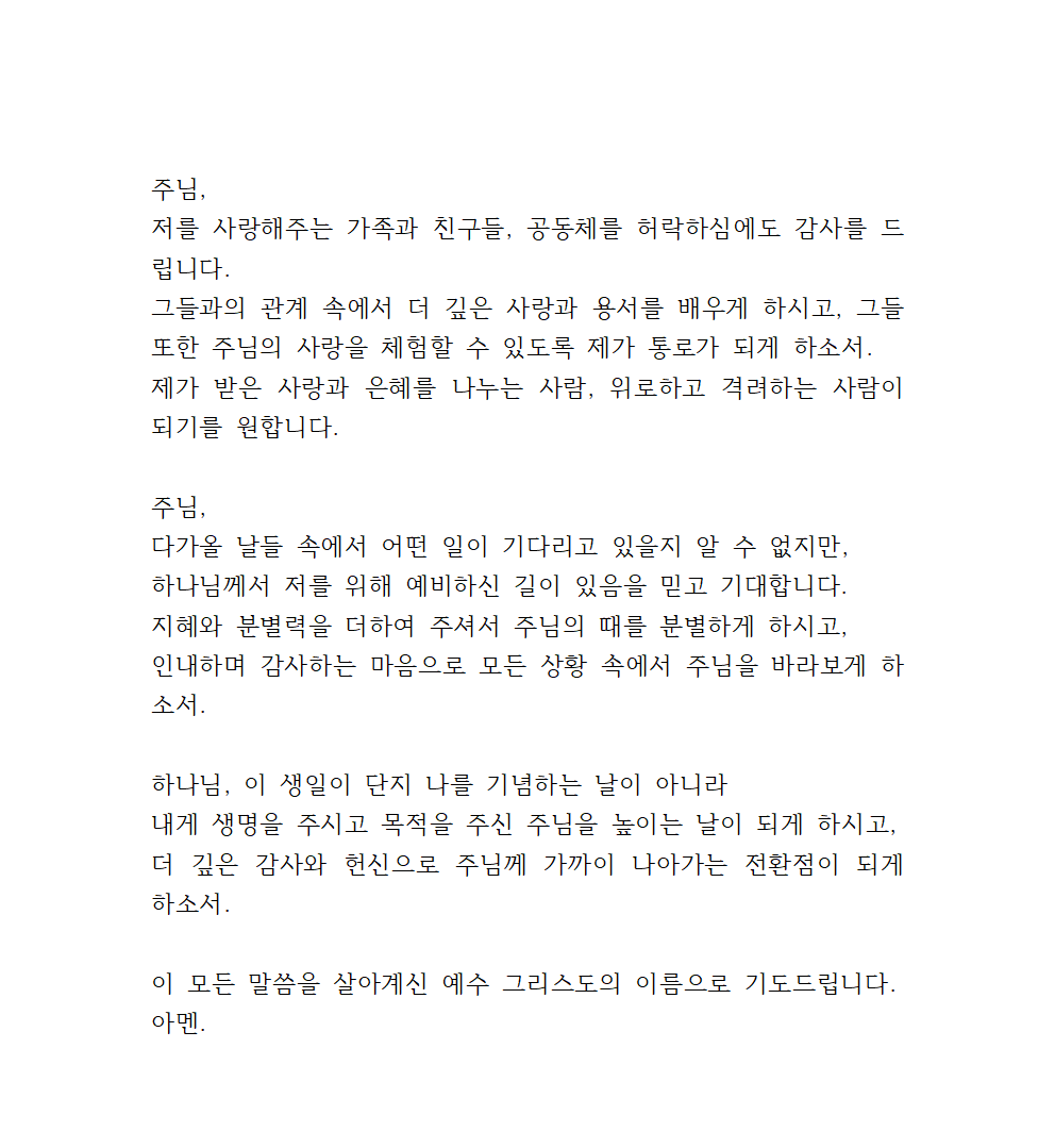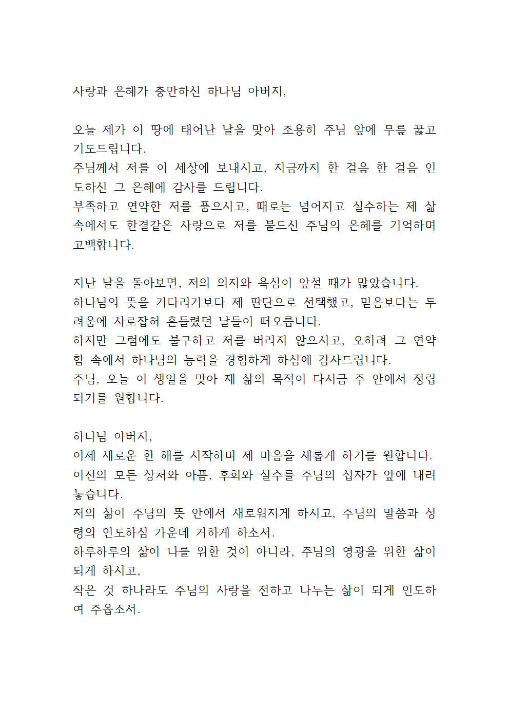 자기 자신의 생일 기도문은 경건하면서도 진솔하게 작성하면 좋을 것 같아요.