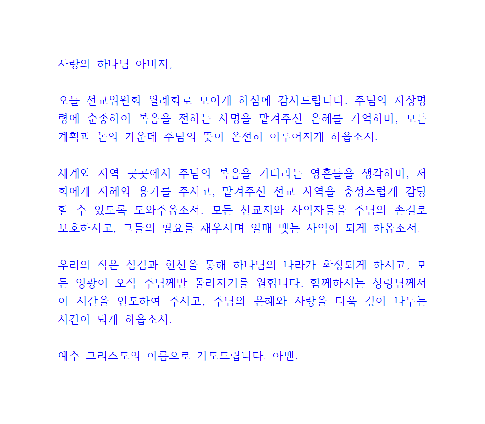 선교위원회 월례회 기도문 내용