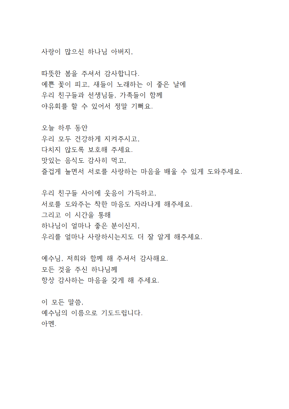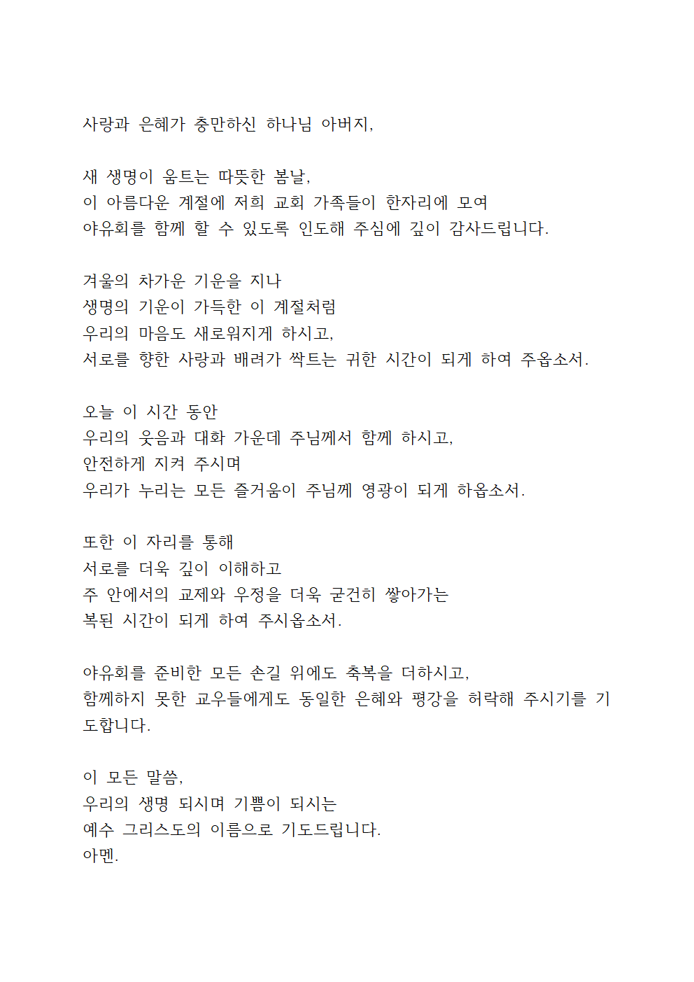 ※ 다른 형식의 야유회 기도문을 참고해서 기도해 보세요.