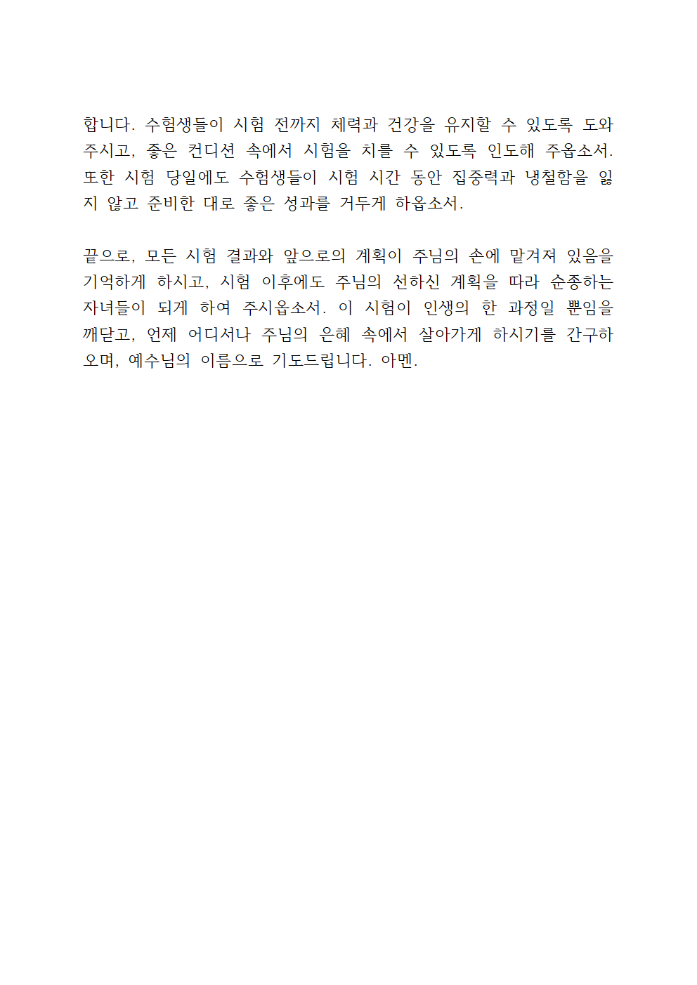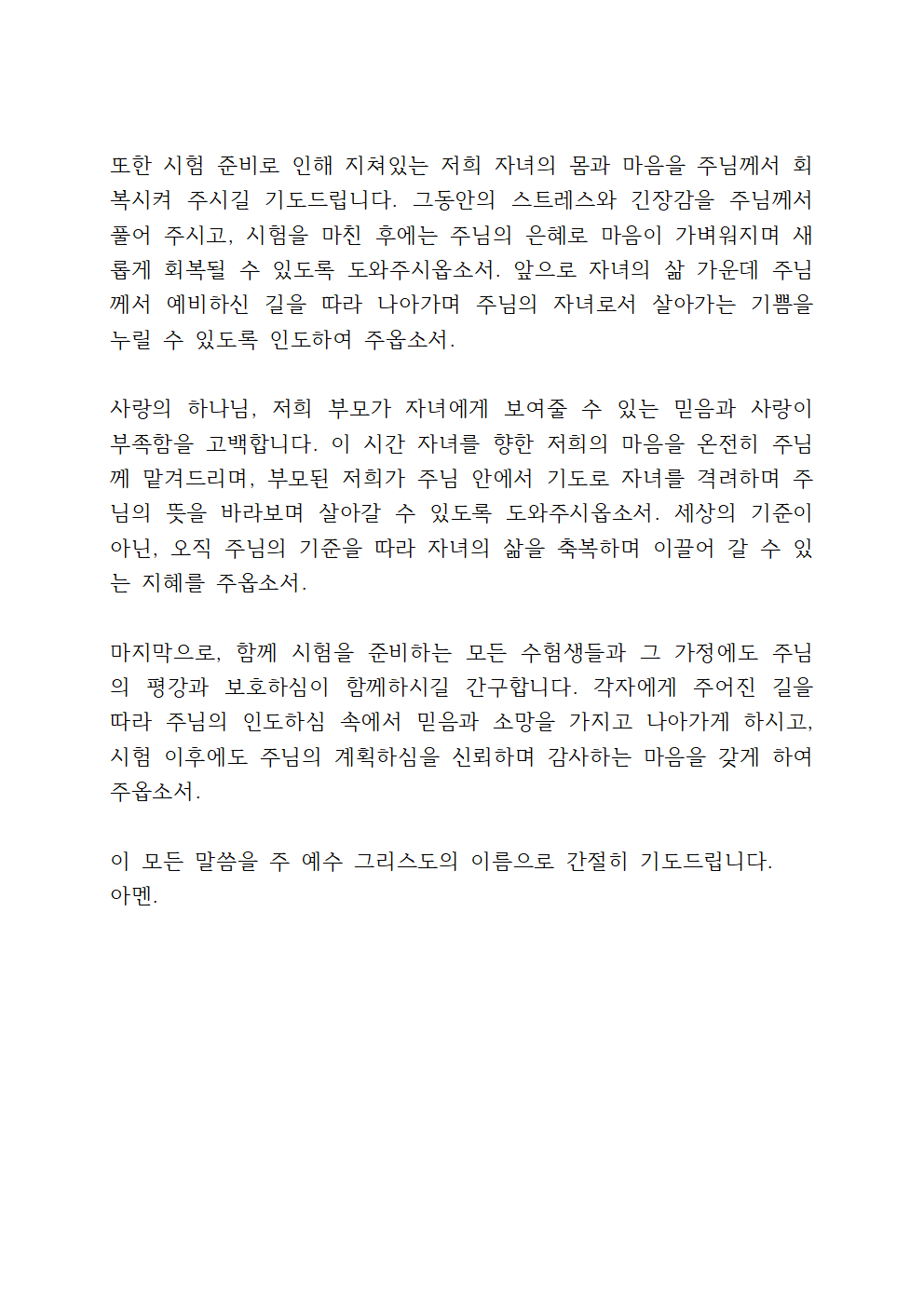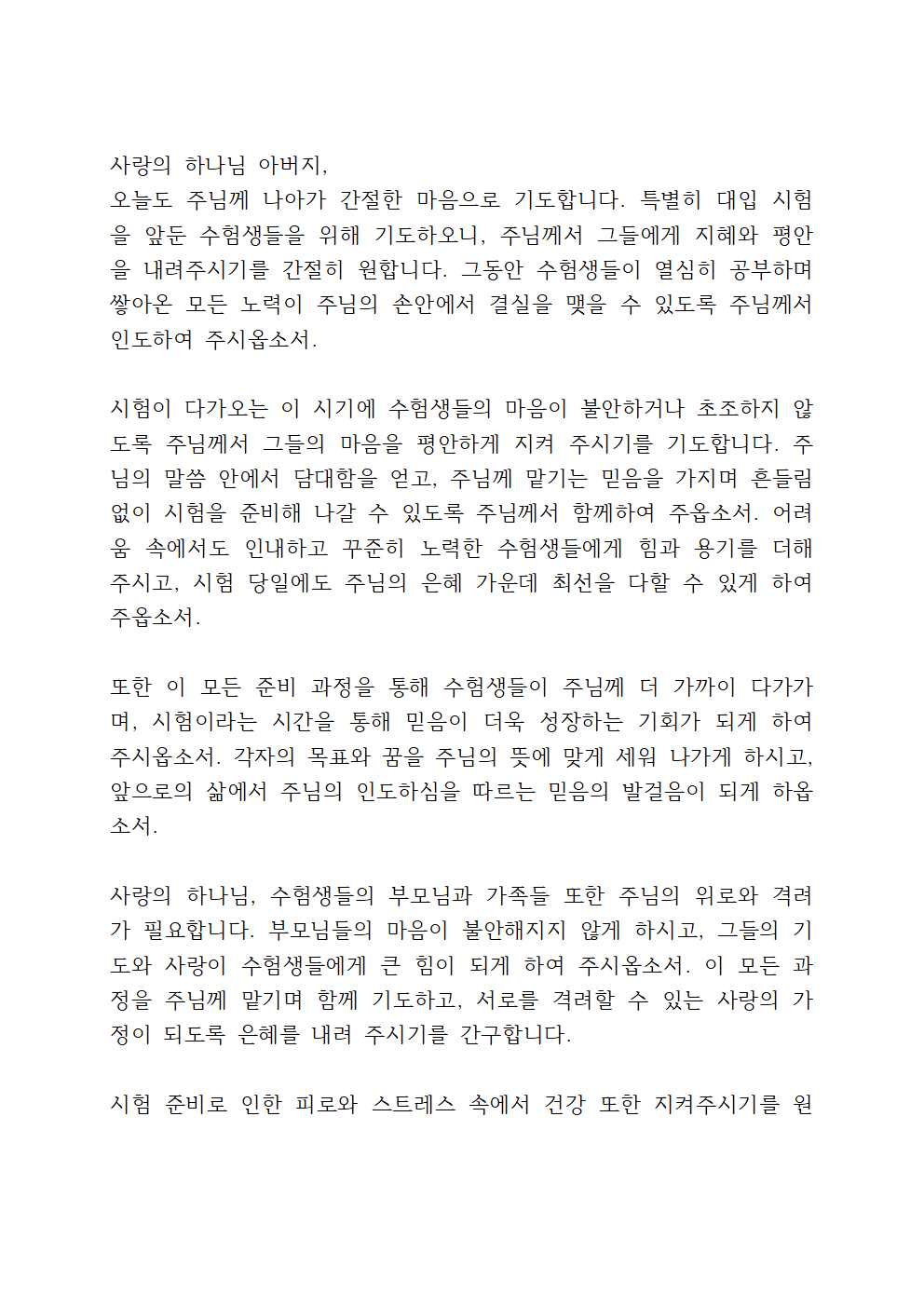 수험생 자녀를 위한 기도문
