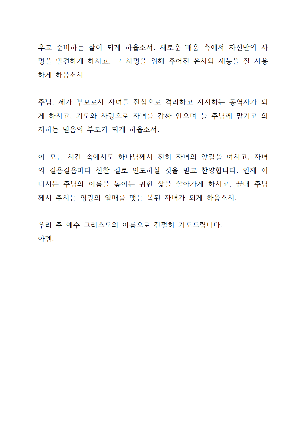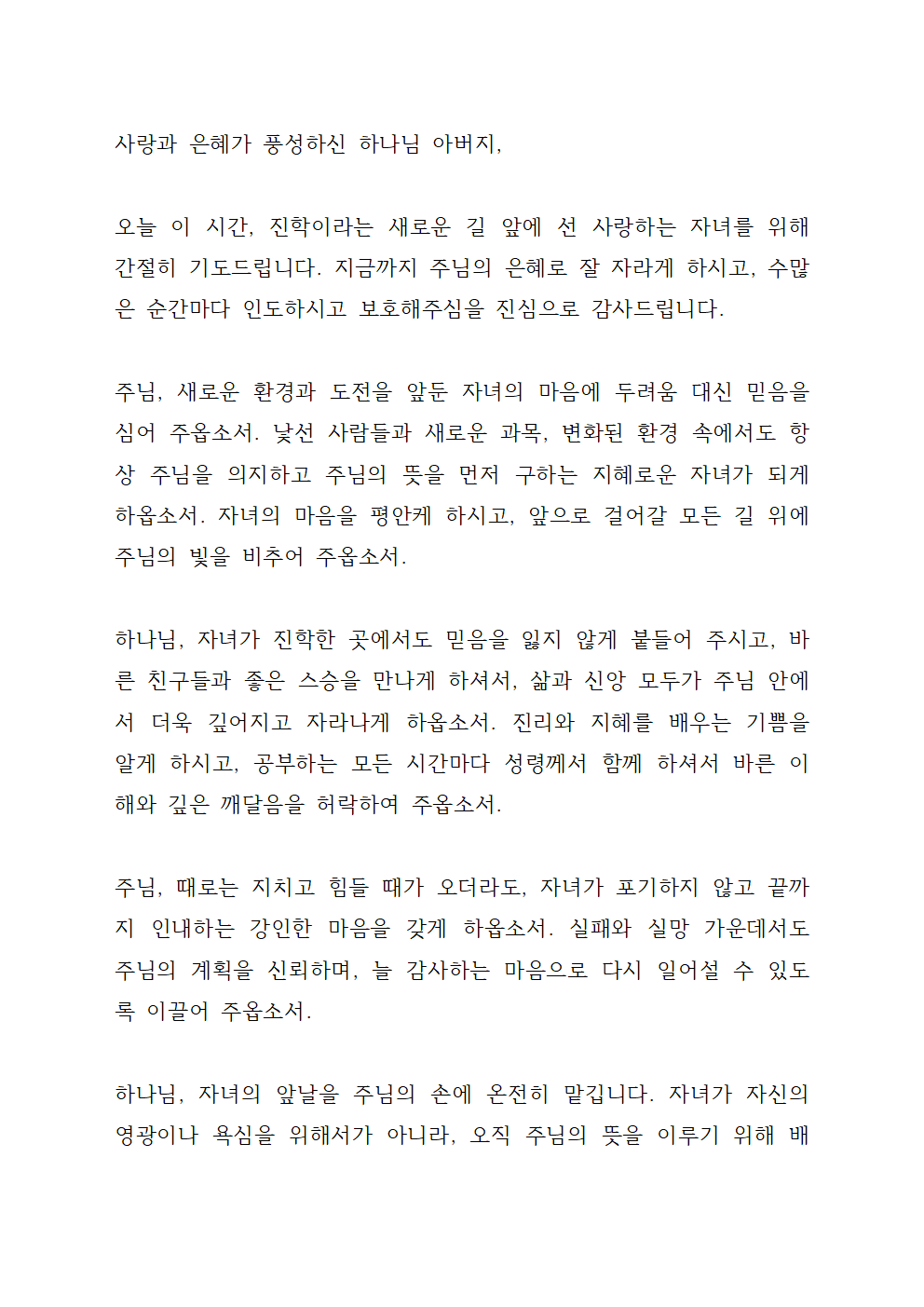 진학하는 자녀를 위한 기도문