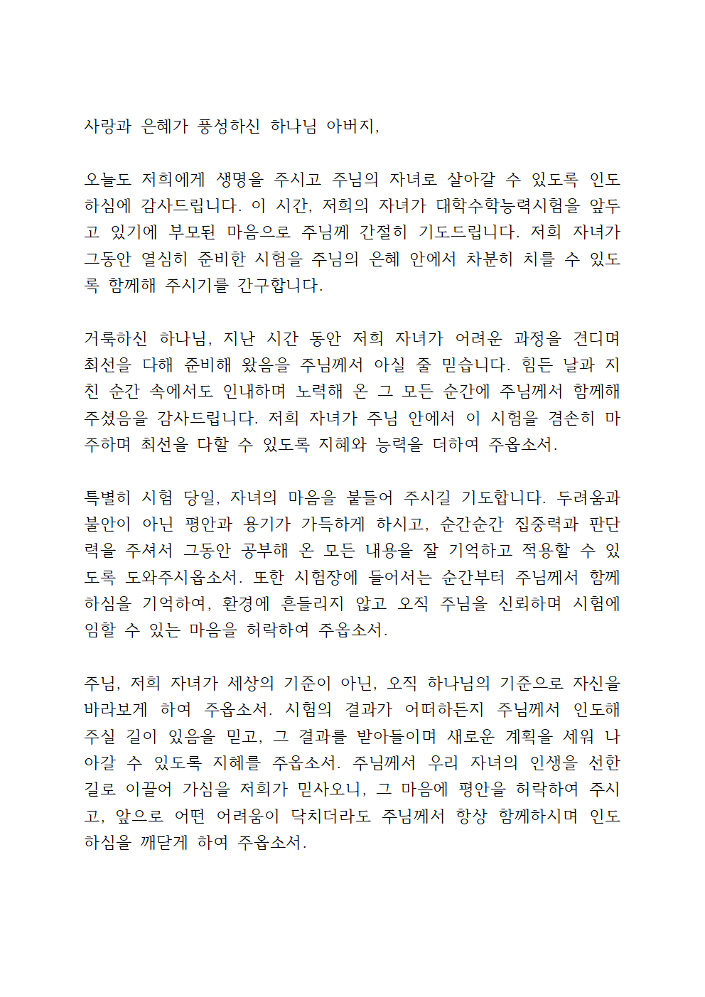 수능 자녀를 위한 기도문