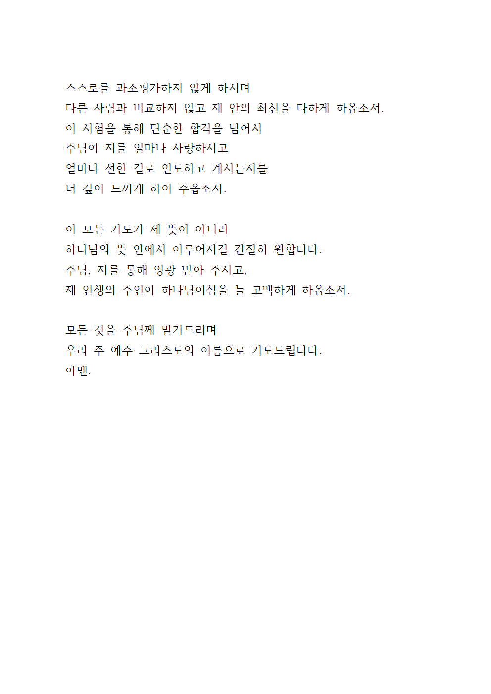 시험을 앞둔 본인의 기도문