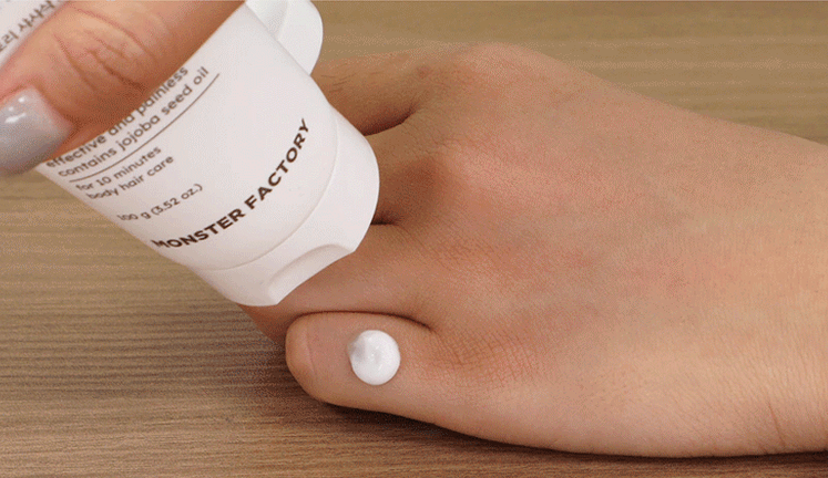 2. 피부 반응이 없는 것을 확인한 후, 제모가 필요한 부위에 적당량의 제모크림을 고르게 펴 발라줍니다.