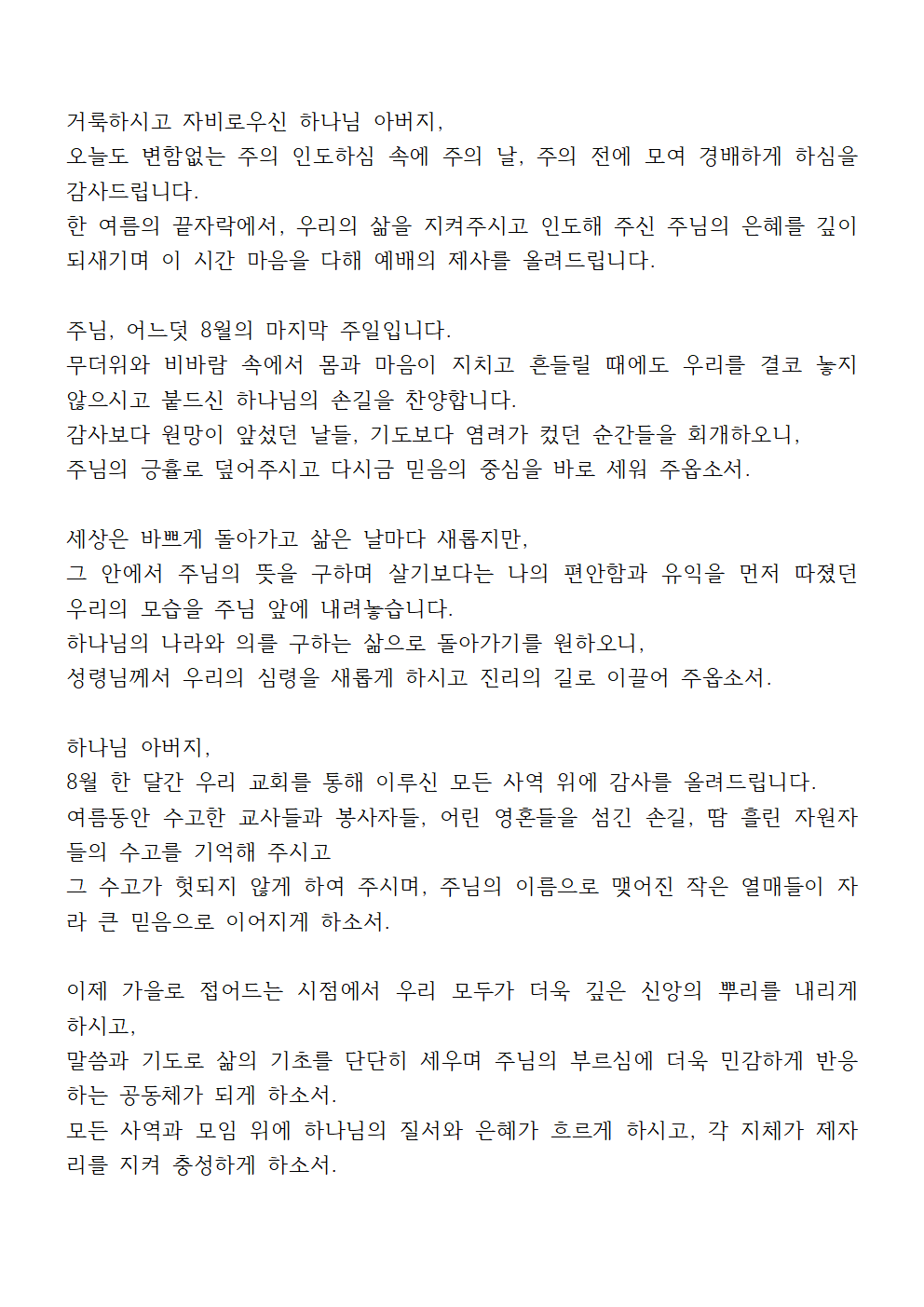 '2025년 8월 다섯째주일 대표기도문 모음 (hwp)'