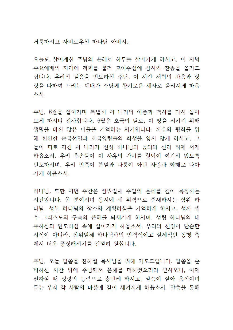 6월 수요예배 대표 기도 시 아래의 기도문들을 참고해서 기도해 보세요~!!