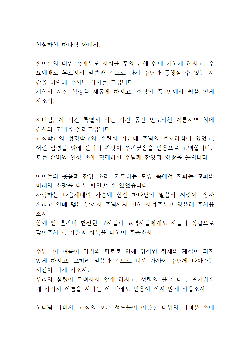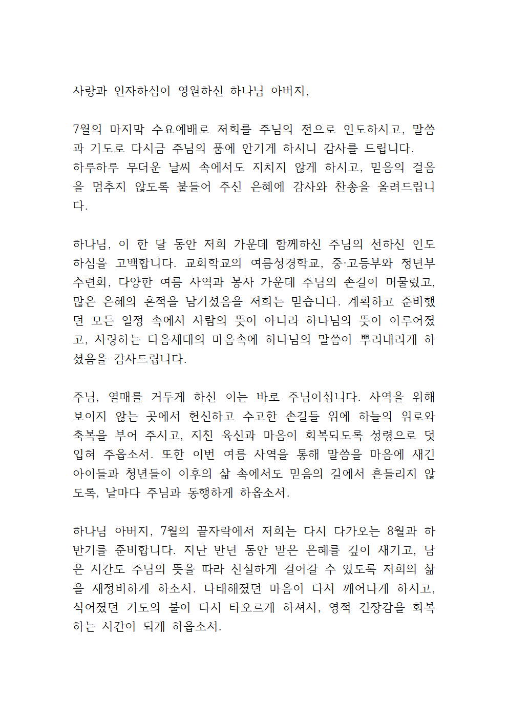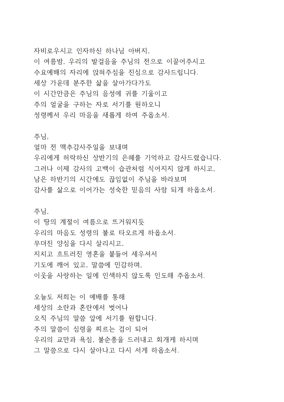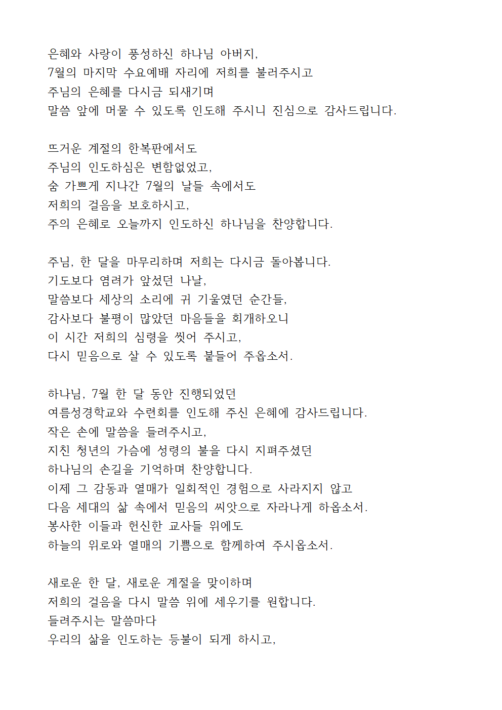 7월 다섯째 주 수요기도문 (2)