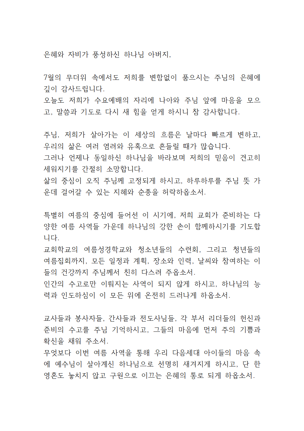 7월 첫째 주 수요기도문 (1)