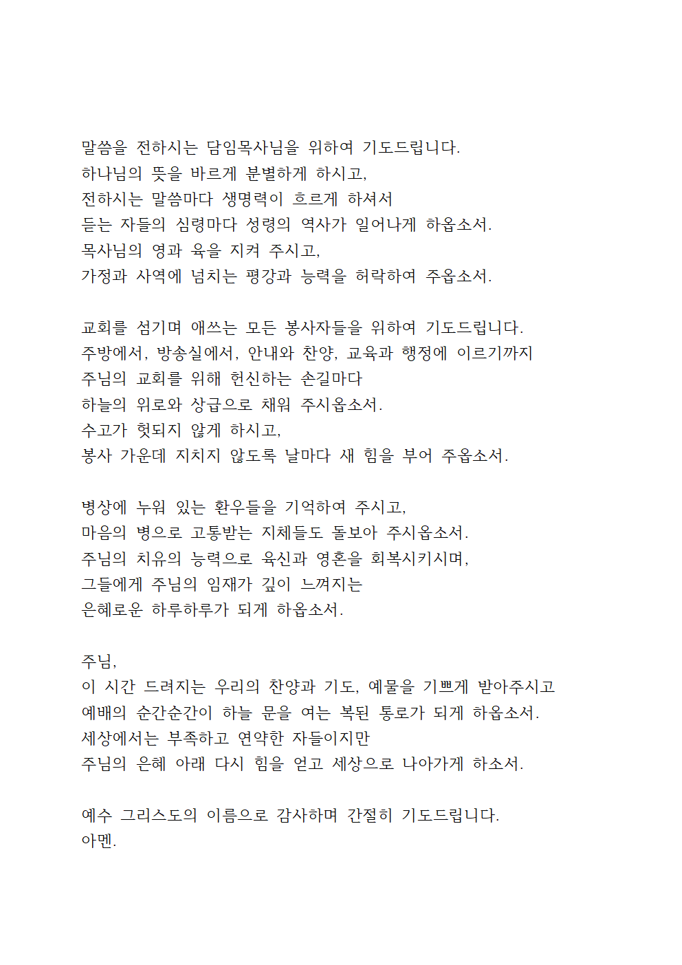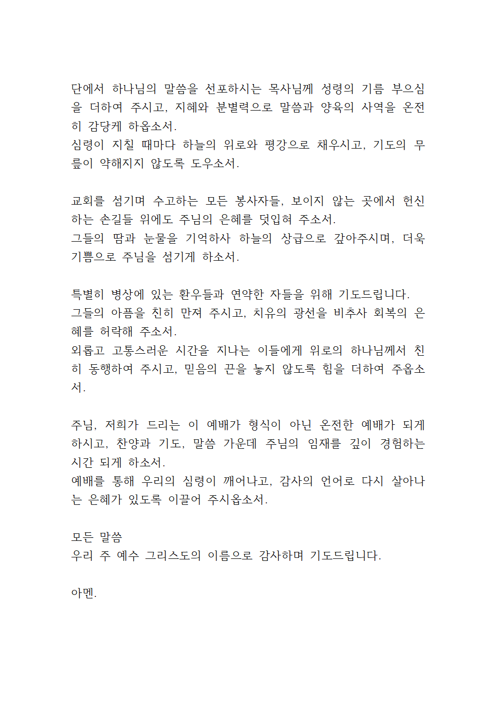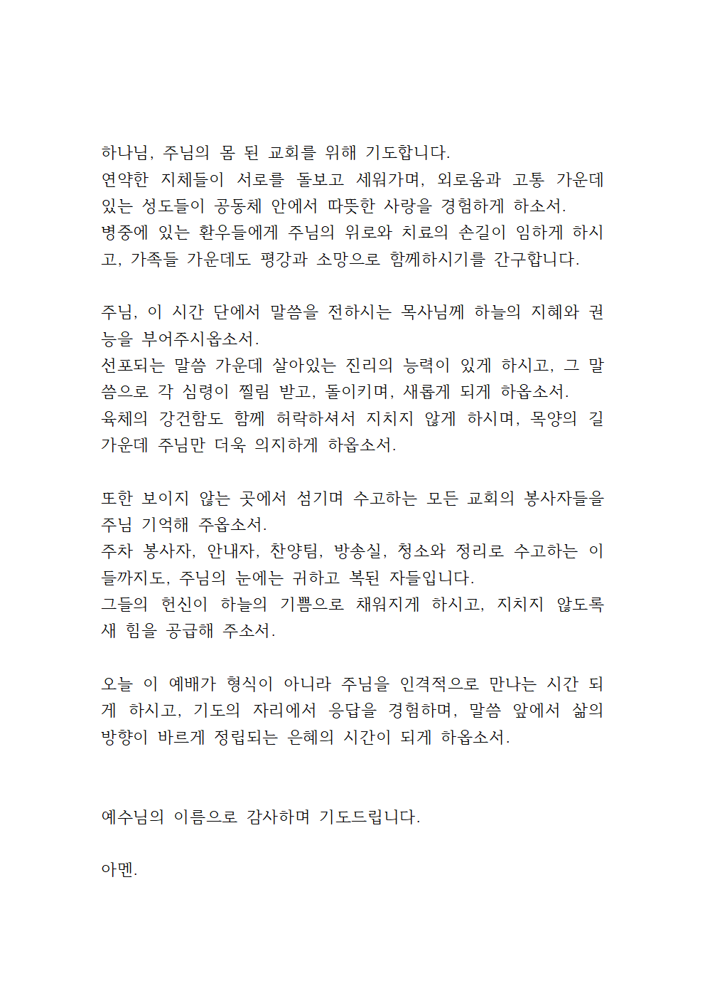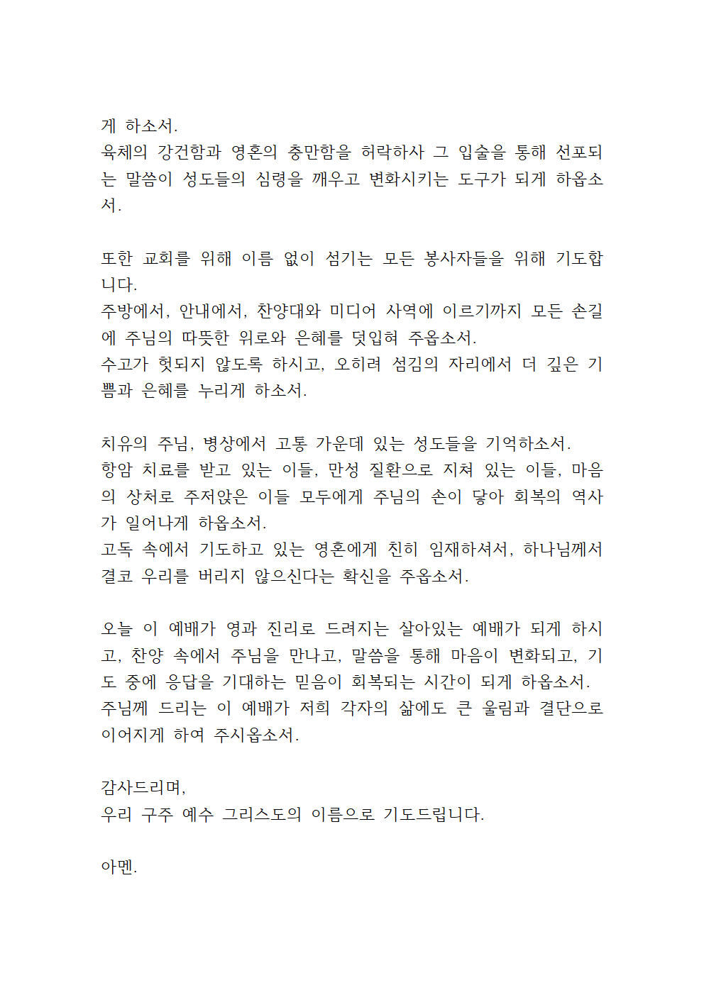 우리 주 예수 그리스도의 이름으로 기도드립니다.