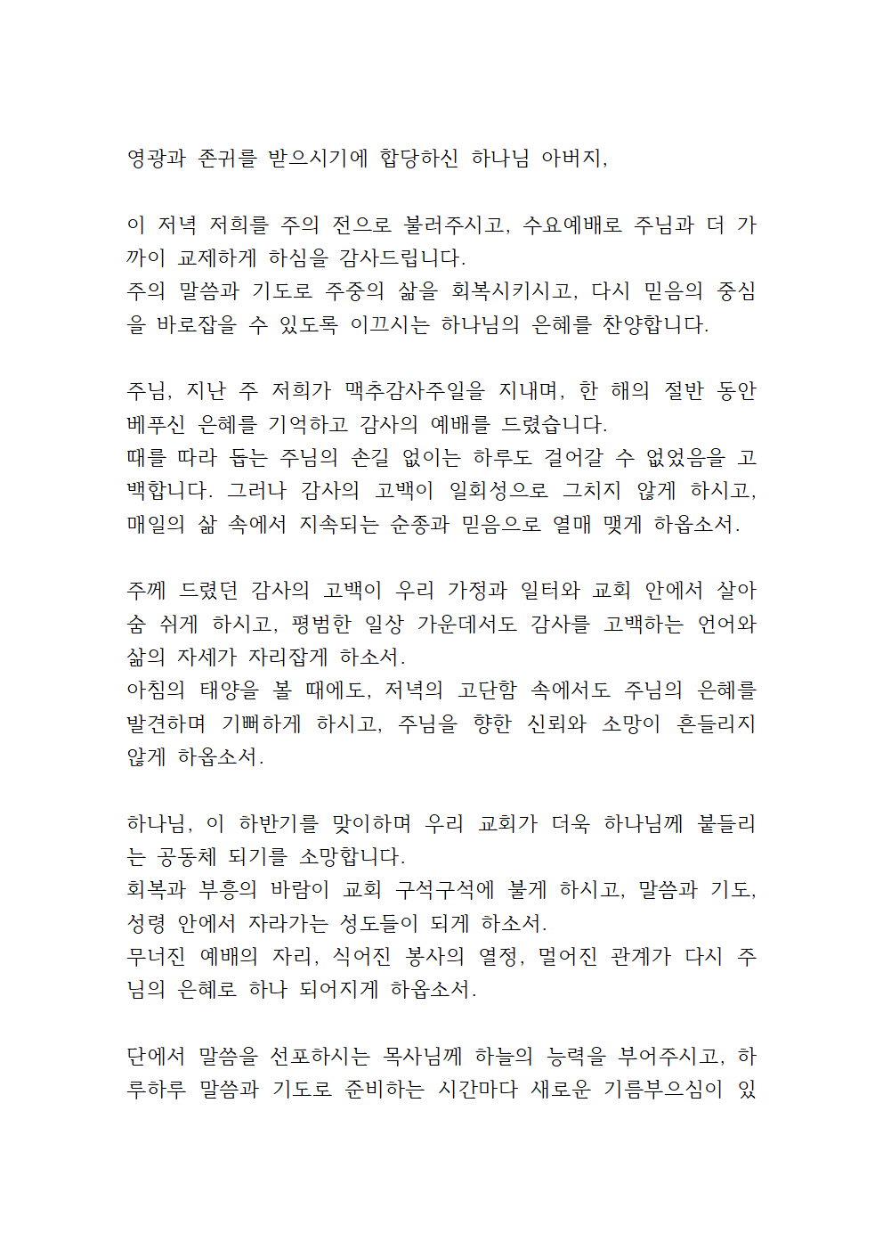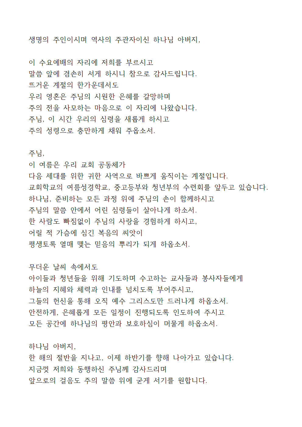 7월 넷째 주 수요기도문 (2)
