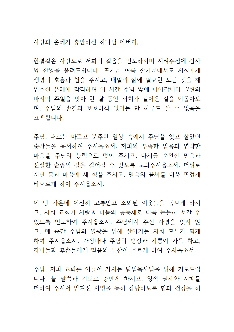 '7월 주일예배 대표기도문'